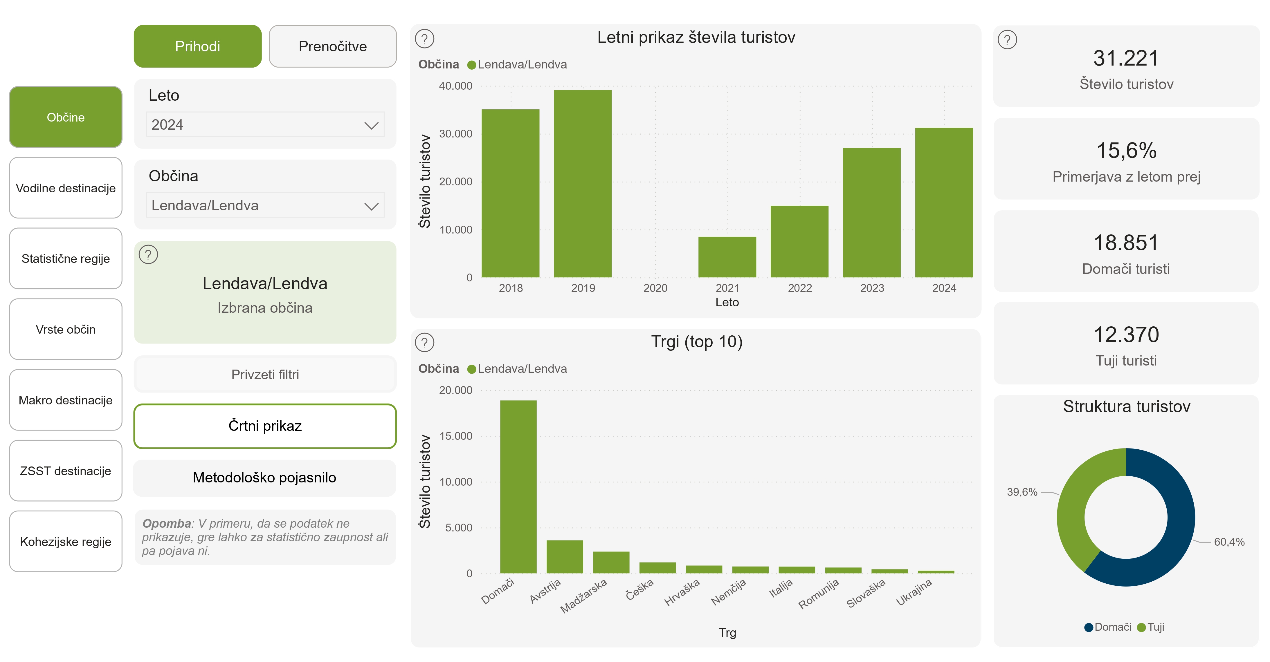 Prihodi in prenočitve turistov - Lendava: 2022, 2023, 2024